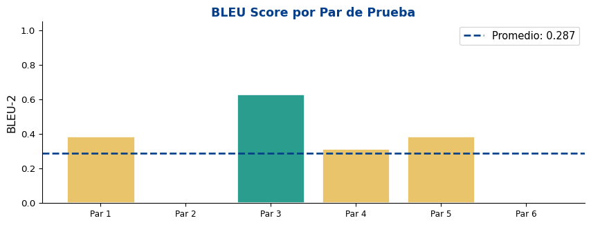 BLEU ∈ [0, 1] (o [0, 100] como porcentaje)