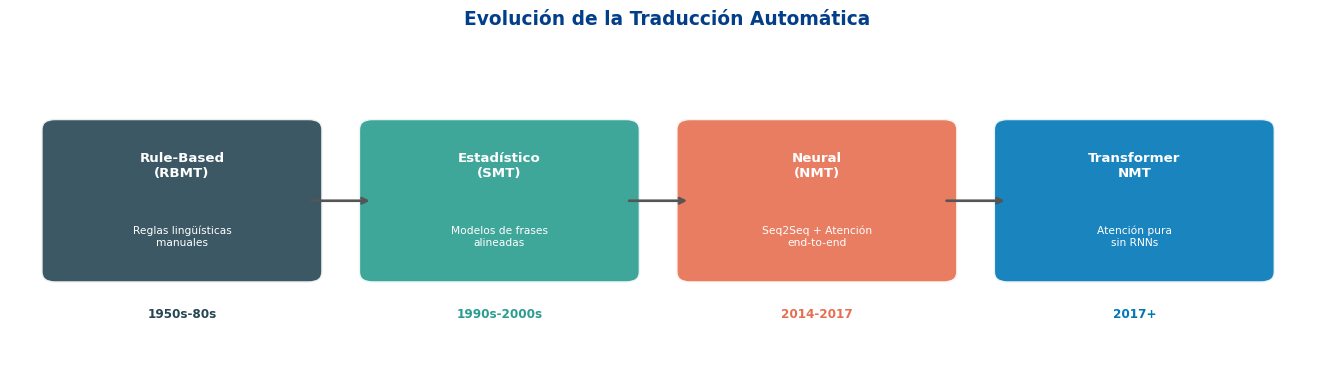 En 2016, Google reemplazó su sistema estadístico por Google Neural Machine Translation (GNMT) — un sistema Seq2Seq con atención de 8 capas. La calidad mejoró más en un solo salto que en los 10 años previos.