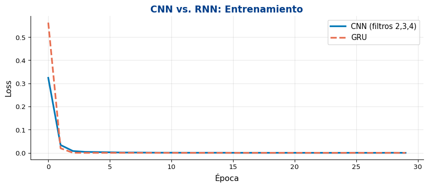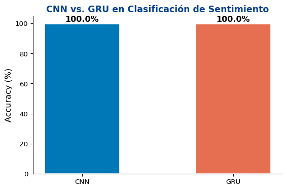 Para clasificación de texto (sentimiento, temas), las CNNs suelen ser más rápidas de entrenar que RNNs con resultados comparables o mejores. Para tareas que requieren dependencias largas (traducción, generación), las RNNs con atención siguen siendo superiores.