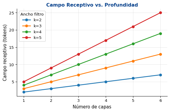 \(L\) capas con \(k\): campo receptivo = \(L(k-1) + 1\)